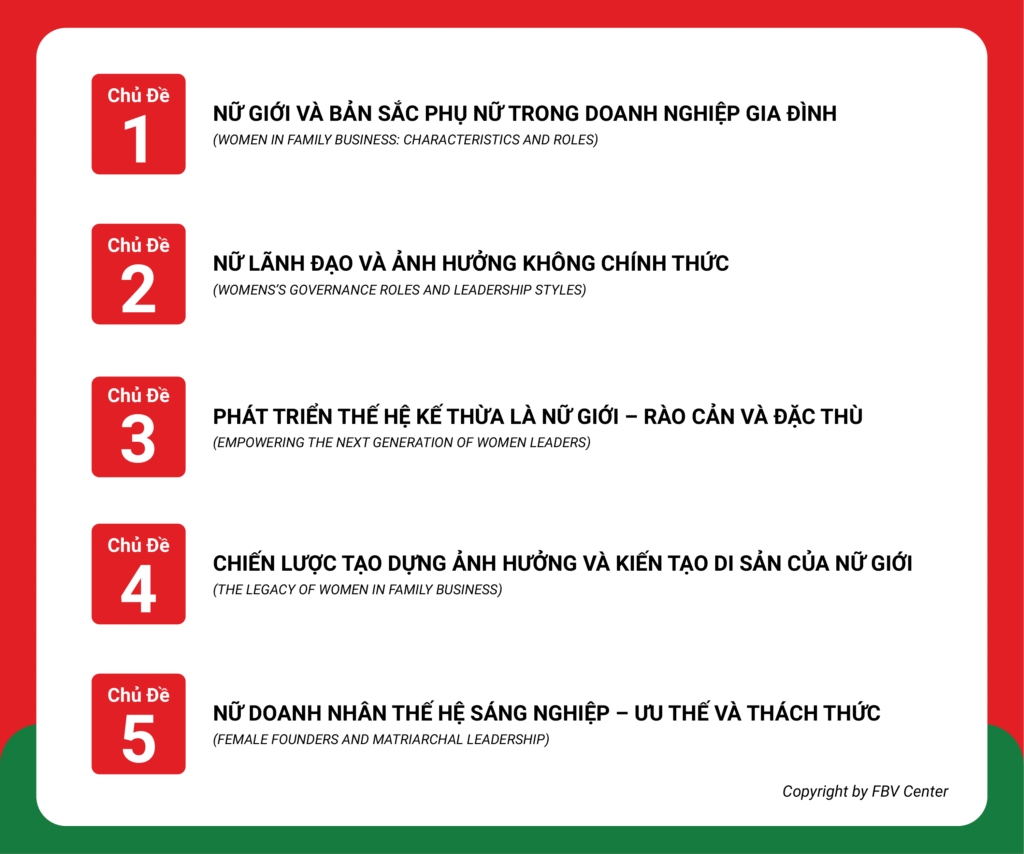 - Hiểu rõ vai trò, thách thức và tiềm năng của phụ nữ trong môi trường doanh nghiệp gia đình.